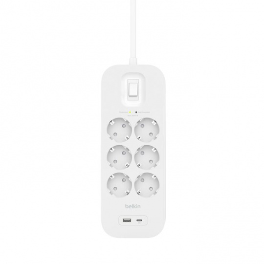BELKIN přepěťová ochrana s portem USB-C a USB-A (6 zásuvek + 1x USB-C a 1x USB-A)