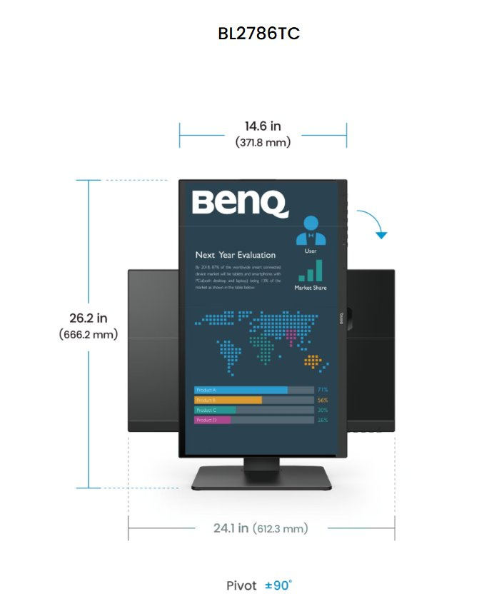 BenQ LCD BL2786TC 27" IPS/1920×1080/100Hz/5ms/DP/HDMI/USB/Jack/Repro/VESA/Pivot/černá
