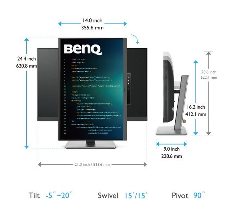 LED monitor s úhlopříčkou 24,1" a WQXGA rozlišením 2560 × 1600 bodů byl navržen speciálně pro programátory. Nabízí kontrastní poměr 1000 : 1, jas 300 cd/m2, dobu odezvy 5 ms a 95% pokrytí DCI-P3 barevné palety. Použitá technologie IPS nabízí pozorovací úhly 178° horizontálně i vertikálně a díky podpoře HDR10 dokáže monitor vytvářet realistický a vizuálně působivý obraz. Pro připojení periferií jsou k dispozici tři porty USB 3.0 a dva porty USB-C, z nichž jeden kromě vysokorychlostního přenosu videa a dat umožňuje napájení připojených zařízení až do 90 W. Díky technologii Daisy Chain lze jednoduše propojit více monitorů a připojit je k počítači jediným kabelem. Monitor disponuje VESA uchycením a integrovanými stereo reproduktory s celkovým výkonem 4 W. Potěší také automatické nastavení jasu dle okolního osvětlění, výškově nastavitelný stojan a funkce Pivot, která umožňuje otočení obrazovky o 90°.