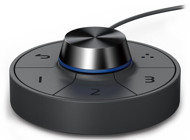 Součástí balení je dálkový ovladač Hotkey Puck G2, který slouží k rychlému přepínání nastavitelných módů obrazu bez nutnosti vstupu do menu. Kromě několika funkčních tlačítek obsahuje tento ovladač také otočné kolečko, které umožňuje rychlou úpravu jasu, kontrastu nebo hlasitosti.