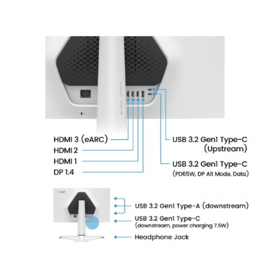 USB Type-C Směrem dolů (USB 3.2 Gen 1, 5 Gbps, nabíjení energií 7.5W): 1