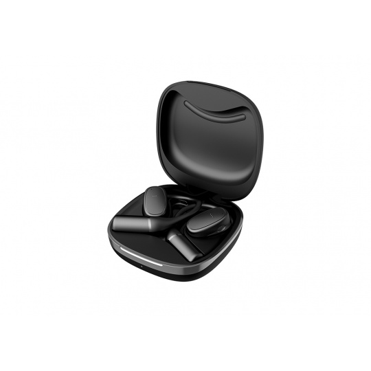 Bezdrátová sluchátka s mikrofonem • za uši • Bluetooth 5.3 • hlasový asistent • přepínání skladeb • frekvenční rozsah 20-20000 Hz • citlivost 120dB • výdrž baterie až 40h (8h sluchátka + 32h nabíjecí pouzdro)