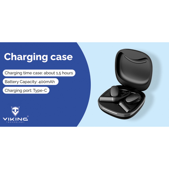 S bezdrátovými Bluetooth sluchátky Viking V49 si užijete až 8 hodin přehrávání na jedno nabití, přičemž s využitím nabíjecího pouzdra získáte dalších 28 hodin. Potěší Vás automatické párování sluchátek po vyjmutí z nabíjecího pouzdra nebo nabíjení pomocí moderního USB-C kabelu.