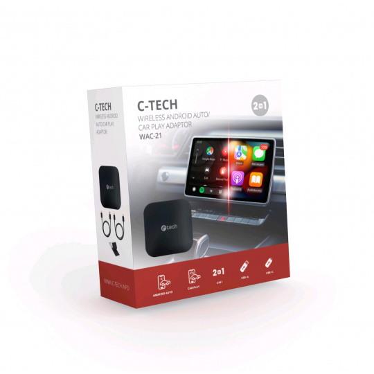 Užijte si naprostou svobodu a pohodlí s kombinovaným adaptérem C-TECH WAC-21, který umožňuje snadné propojení vašeho automobilu s bezdrátovými verzemi Android Auto i Car Play. Tento jedinečný adaptér kombinuje funkce pro obě platformy, což znamená, že nezáleží na tom, jaký telefon máte – vždy si vychutnáte přístup k oblíbeným funkcím, aplikacím a službám přímo na obrazovce palubního počítače vašeho vozu.