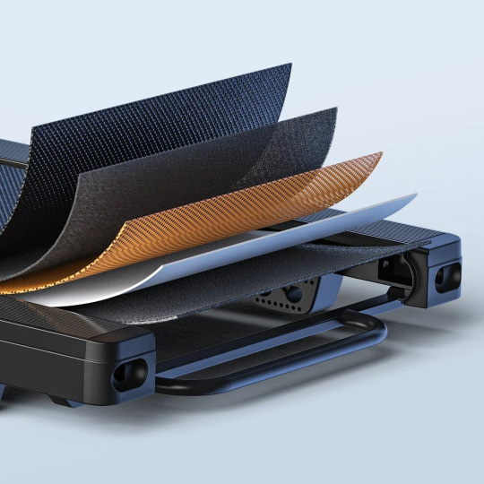 Pětivrstvý protiskluzový pás doplněný o silikonové tlumiče nárazů chrání vaše klouby během každého kroku. Bezpečnost zvyšuje funkce automatického vypnutí a plynulá regulace rychlosti.