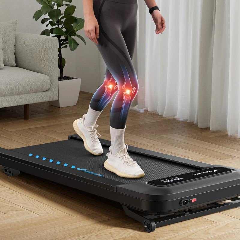 Pětivrstvý protiskluzový pás doplněný o silikonové tlumiče nárazů chrání vaše klouby během každého kroku. Bezpečnost zvyšuje funkce automatického vypnutí a plynulá regulace rychlosti.