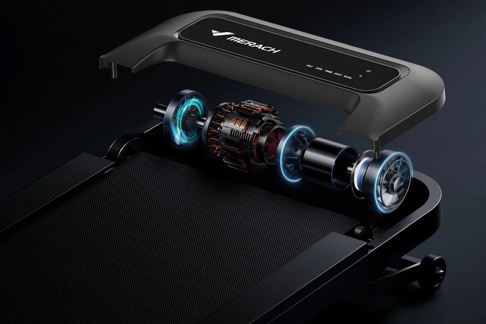 Magnetický dálkový ovladač umožňuje rychlé nastavení rychlosti v rozmezí 1 až 6 km/h. LED displej zobrazuje čas, rychlost, vzdálenost i spálené kalorie. Díky Bluetooth propojení s aplikacemi Merach, Kinomap nebo Zwift sledujete svůj pokrok v reálném čase.