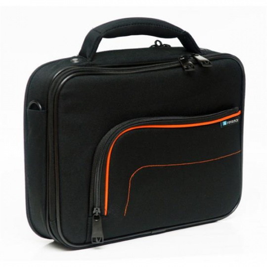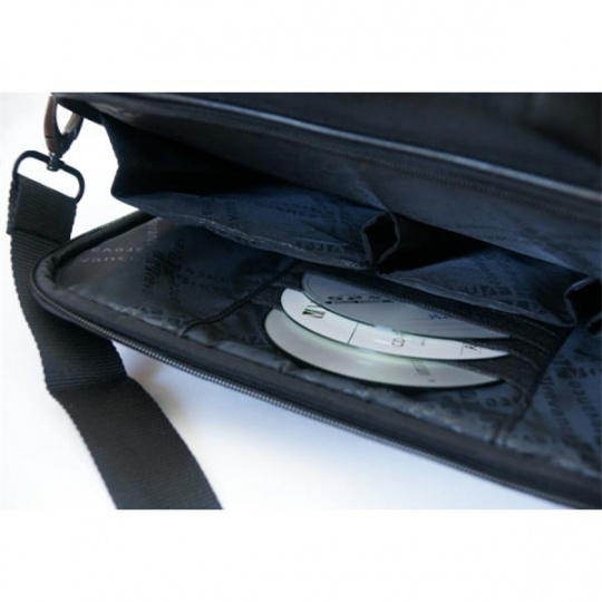 *přední kapsa s držáky na pera a kapsami na vizitky, kapsa na kabely, myš, zdroj a jiné potřeby
