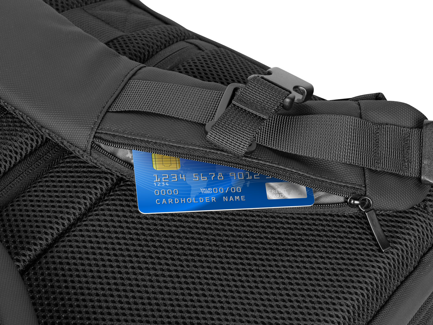 - Polstrovaný zádový panel s další bezpečnostní kapsou pro ochranu cenností před krádeží.