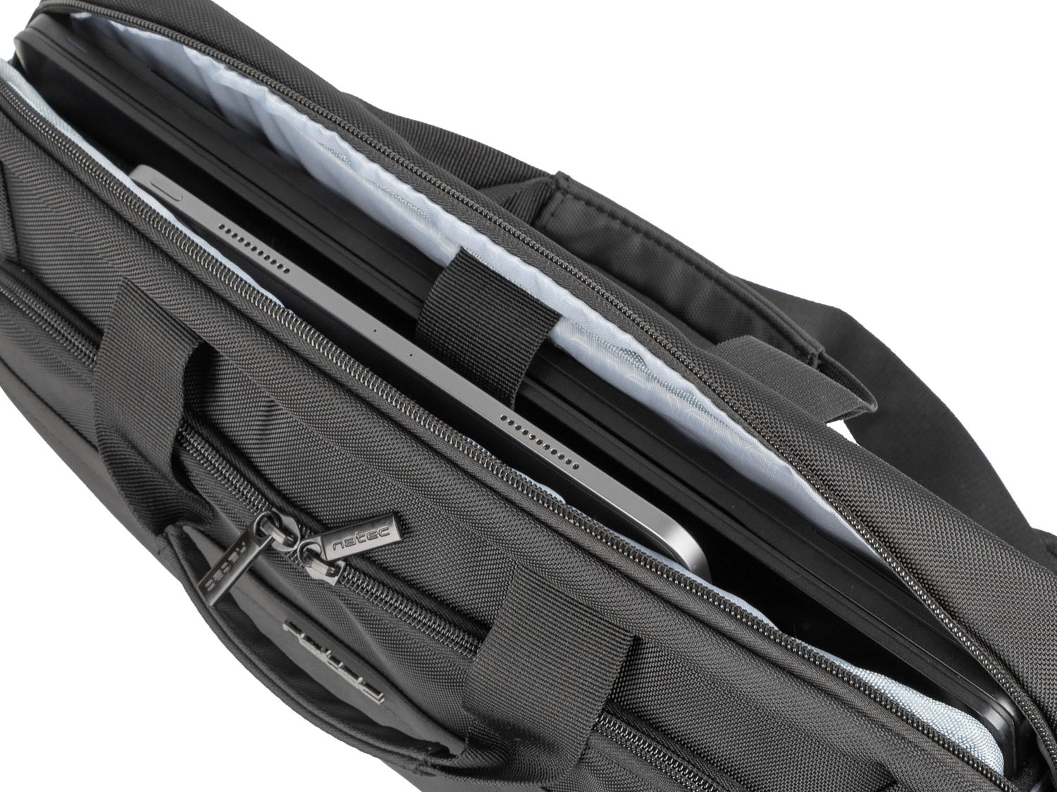 Objemná hlavní přihrádka není vše. Natec Kudu je vybaven další přihrádkou se síťovanou kapsou na zip. Ta vám umožní uspořádat a zajistit příslušenství tak, aby zůstalo na svém místě i během cestování. Kabely, nabíječky, myš - to vše můžete mít vždy po ruce.