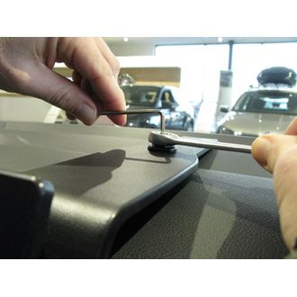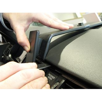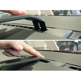 Šetrnost k interiéru: Jedná se o montáž bez poškození interiéru. Není potřeba nic vrtat nebo šroubovat do palubní desky. Klip se jednoduše zatlačí do prakticky neviditelných spár v palubní desce.