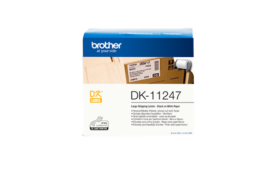Tyto originální štítky Brother DK-11247 černá na bílé jsou užitečné pro širokou škálu vašich požadavků. Pro použití ve skladech i v kancelářských prostředích mohou být tyto velké přepravní štítky použity k zobrazování log, čárových kódů, odznaků návštěvníků nebo informací o přepravě.