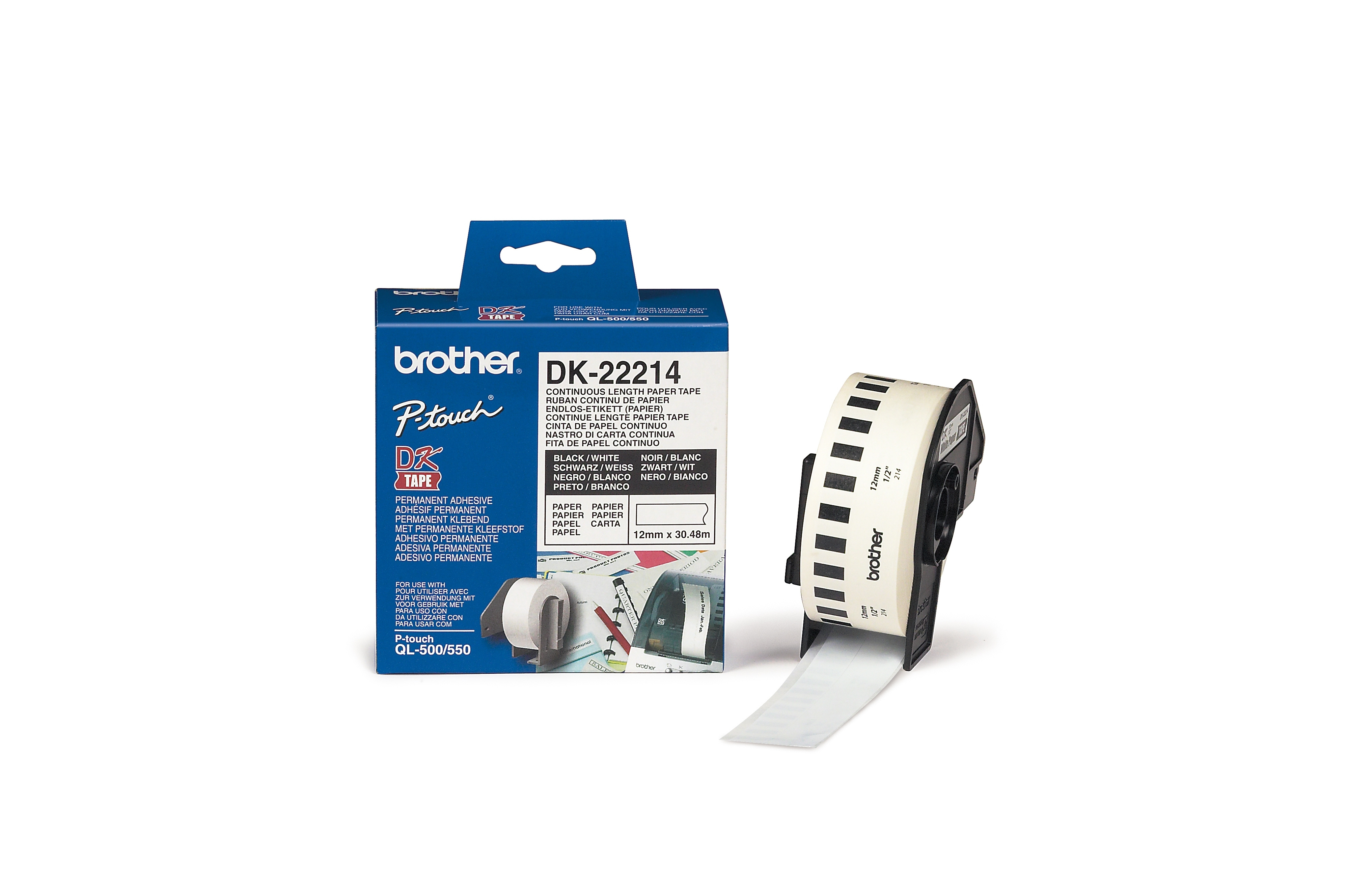 Originální Brother DK-22214 kontinuální papírová páska - černá na bílé, šířka 12 mm