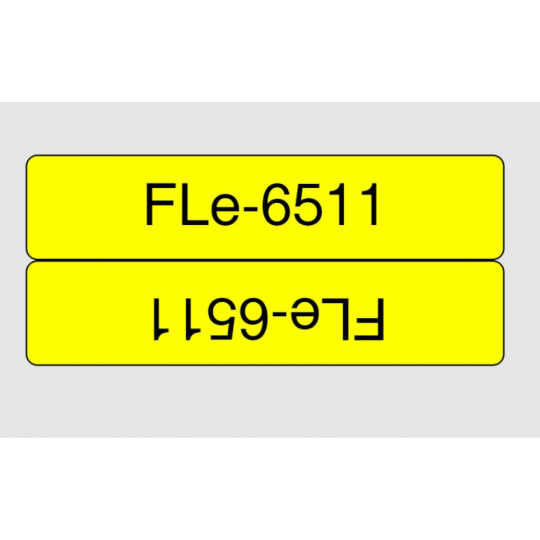 Tato popisovací černo-žlutá páska FLe-6511 je ideální jak pro identifikaci kabelů tak pro univerzální použití. Jednoduše vytiskněte text nebo čárový kód na dvě části předřezaného štítku. Připevněte proužek štítku kolem kabelu, poté vezměte vytištěný předřezaný štítek a jednu polovinu přilepte na proužek štítku a poté jej přeložte přes druhou polovinu.