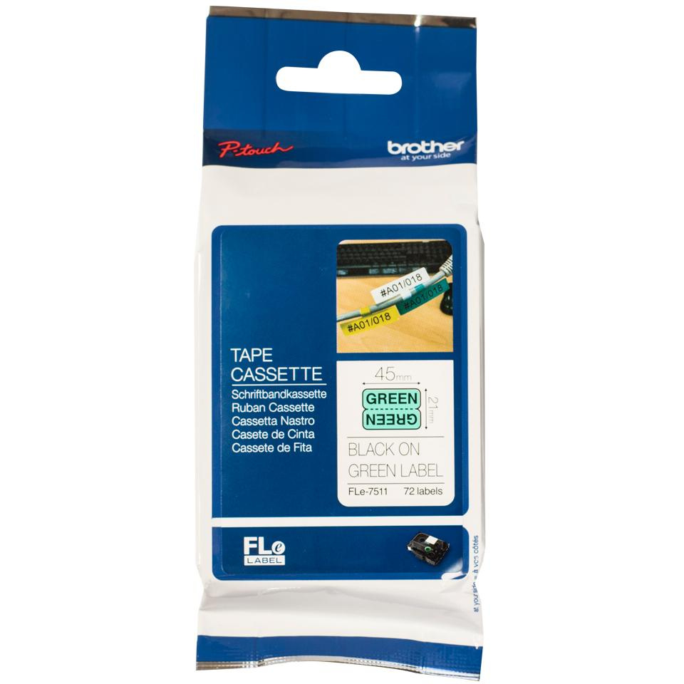Brother FLe-7511 předřezané štítky - černá na zelené, 21 mm šířka
