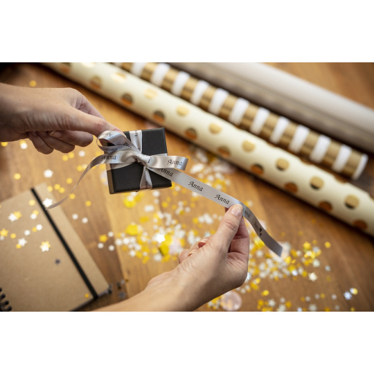 Tato textilní stuha bez lepící vrstvy s luxusním lesklým povrchem je ideální pro balení dárků a řemeslných výrobků.