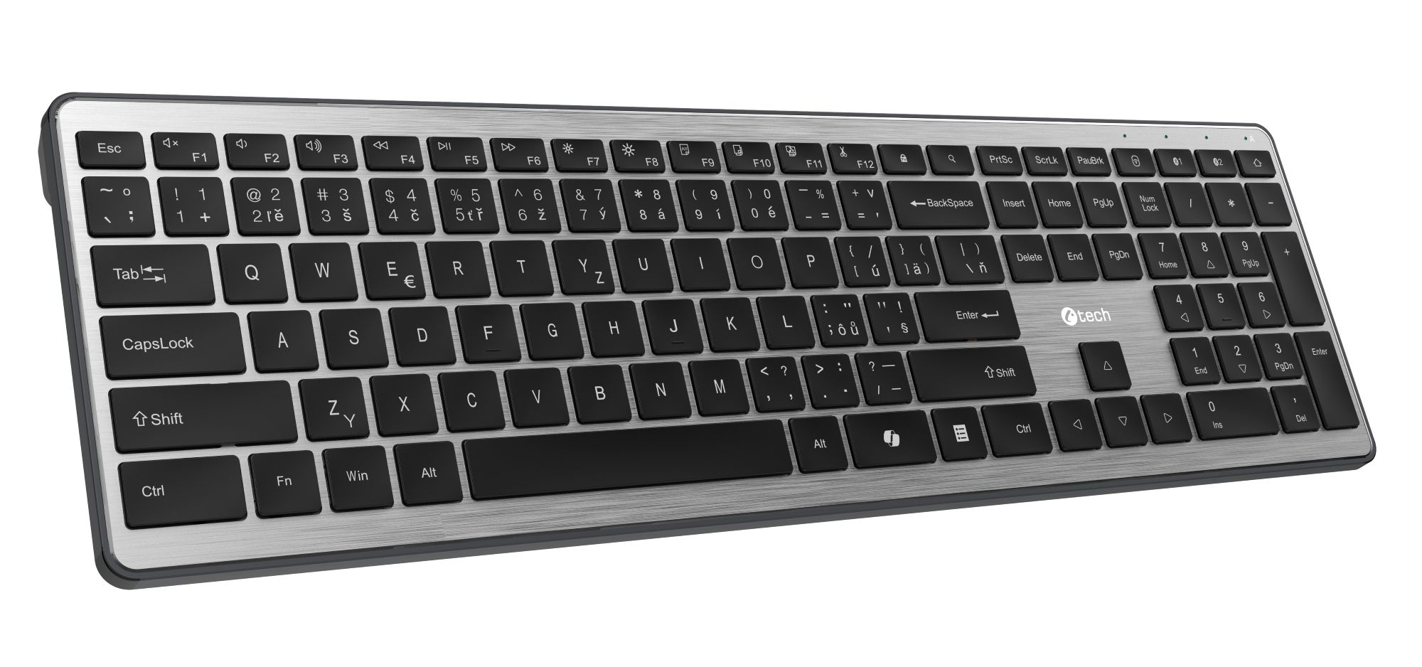 C-TECH klávesnice Quallis KB-118 Dual mode, bezdrátová, BT5.0 + 2,4GHz, scissors tlačítka, USB nano receiver, CZ/SK