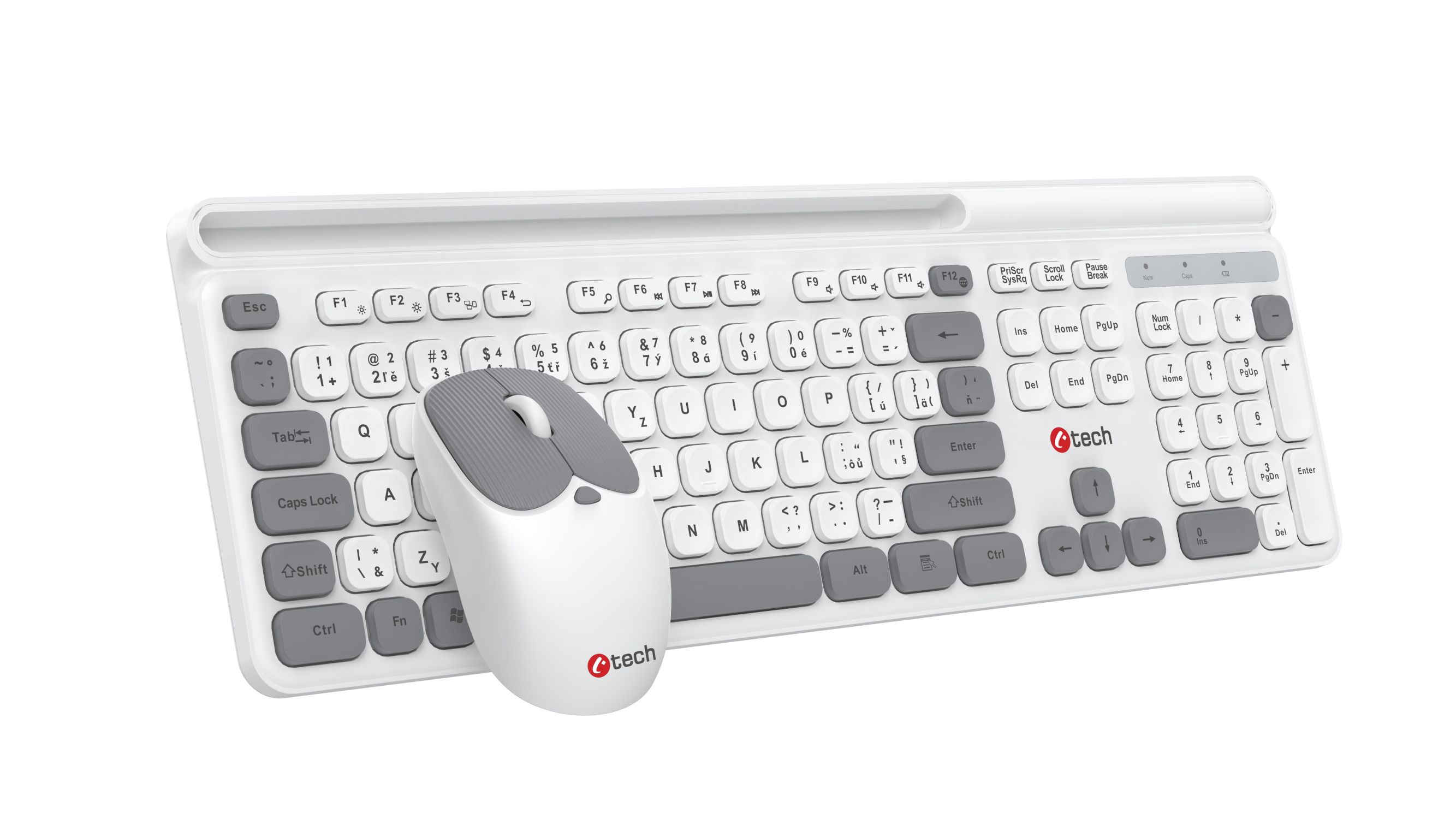 C-TECH WLKMC-05W Quallis, bezdrátový set klávesnice s myší,odkládací prostor,USB, CZ/SK,bílá