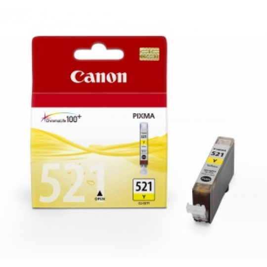Žlutá inkoustová kazeta Canon CLI-521Y, 9ml, kompatibilní s Canon Pixma IP 3600, Canon Pixma IP 4600, Canon Pixma IP 4600 X, Canon Pixma IP 4700, Canon Pixma MP 540, Canon Pixma MP 550, Canon Pixma MP 560, Canon Pixma MP 620, Canon Pixma MP 630, Canon Pixma MP 640, Canon Pixma MP 640 R, Canon Pixma MP 980, Canon Pixma MP 990, Canon Pixma MX 860, Canon Pixma MX 870.