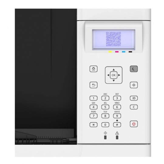 Ovládací panel: Displej LCD s 5 řádky, 5 indikátorů LED (Online, Ready, Message, Job a Energy saver), tlačítka, číselná klávesnice s 10 tlačítky