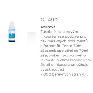 Zásobník s azurovým inkoustem se používá pro tisk barevných dokumentů a fotografií. Tento 70ml zásobník společně se 70ml zásobníkem purpurového inkoustu a 70ml zásobníkem žlutého inkoustu umožňuje vytisknout až 7 000 barevných stran A4.
