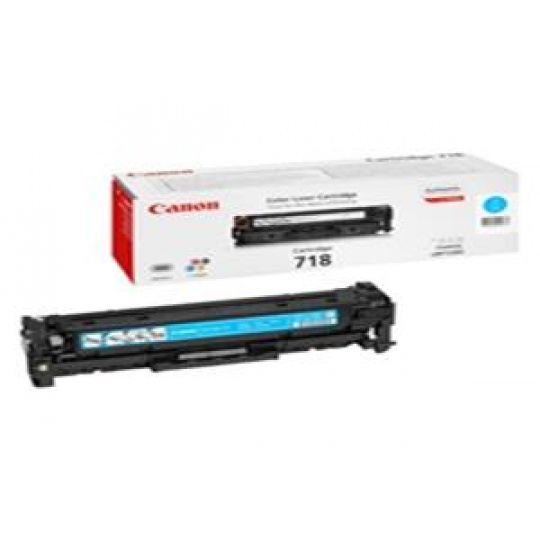Toner Canon CRG-718 Cyan je určen pro vybrané barevné laserové tiskárny Canon. U tiskáren je zajištěn vysoce kvalitní výstup v rozlišení 600×600 dpi, jež lze zvýšit na ekvivalentní rozlišení 9600×600 dpi pomocí funkce automatického zdokonalení obrazu (AIR – Automatic Image Refinement). Toner CRG-718 cyan obsahuje azurovou barvu a udává se pro něj výdrž až cca 2900 stránek, při standardním 5% pokrytí.