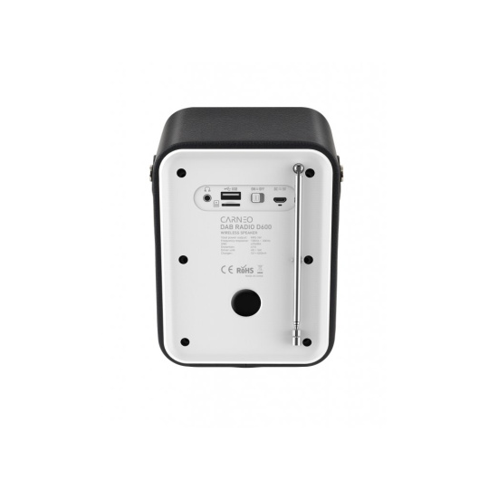CARNEO D600 je kompaktní rádio s módním designem. Poslouchejte své oblíbené rozhlasové programy v pásmu FM nebo DAB+. Digitální tuner DAB+ přijímá signály z éteru čistě a bez šumu. Oblíbenou hudbu můžete poslouchat také bezdrátově prostřednictvím Bluetooth ze smartphonu nebo tabletu.
