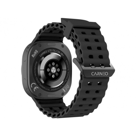 CARNEO GTR Falcon HR+ jsou moderní fitness hodinky v elegantním titanově černém provedení se silikonovým řemínkem, který je příjemný na dotek. Barevný SUPER AMOLED displej s vysokým jasem a funkcí always-on zobrazení poskytuje skvělou čitelnost i na přímém slunci. Hodinky neustále sledují vaši denní aktivitu, úroveň stresu a po spárování s mobilním telefonem Vás upozorní na příchozí hovory či zprávy. Díky vestavěnému mikrofonu a reproduktoru můžete vyřizovat hovory přímo ze zápěstí, bez potřeby vyndávat telefon – a to až do vzdálenosti 10 metrů. Jejich robustní kovové tělo s nadčasovým designem si Vás získá hned při prvním nošení. Navíc, extrémně odolné Gorilla Glass chrání displej před poškrábáním a zachovává jeho křišťálově čistý vzhled. Styl, který si zamilujete už na první pohled. Elegantní kovové tělo s prémiovým zpracováním a tloušťkou pouhých 12 mm působí lehce, moderně a dokonale se přizpůsobí vašemu stylu. Dominantou hodinek je 1,43” Super AMOLED displej, který vás okouzlí křišťálově čistým obrazem a živými barvami. Ať už jste na přímém slunci nebo v šeru, na displeji vždy uvidíte vše jasně a přehledně – bez kompromisů. Spojení elegance, technologie a praktičnosti v jednom – hodinky, které se stanou nedílnou součástí vašeho každodenního života. *Funkce Always on pro permanentní zobrazení ciferníku *Automatické měření srdečního tepu 24/7 *Funkce energie těla *Měření stresu *Telefonování přímo z hodinek díky funkci BT call *Multisport (více než 100 sportovních režimů *Měření krevního tlaku a okysličení krve *Dlouhá výdrž na jedno nabití až 7 dní *Monitor kvality spánku *Unikátní funkce kardio index *Hlasový asistent *Hodinky i aplikace jsou kompletně v češtině Parametry: *Materiál: Kov + silikonový náramek *Baterie: 400 mAh *Displej: 1,43" dotykový HD AMOLED *Rozlišení: 466 x 466 *Verze Bluetooth: V 5.3 *Voděodolnost: IP 67 *Velikost hodinek: 45 mm *Tloušťka hodinek: 12 mm *Šířka řemínku: 25 mm *Hmotnost: 68 g *Notifikace: volání, zprávy, fcb atd. *Telefonování: přímo z hodinek *Sportovní režim: ano *Podporované sporty: Chůze, běh, lezení, jízda na kole, basketbal, badminton, fotbal, eliptický trenažér a další. *Měřené veličiny: Nadpis *Krokoměr: ano *Měření vzdálenosti: ano *Měření krevního tlaku: ano *Měření okysličení krve: ano *Měření spálených kalorií: ano *Kardio index: ano *Úroveň stresu: ano *Výpočet BMI: ano *Monitor Spánku: ano *Energie těla: ano *Aplikace: Carneo FIT v českém jazyce *Životnost baterie: 7 dní *Přehrávání hudby: Ovládání hudebního přehrávače v mobilním telefonu