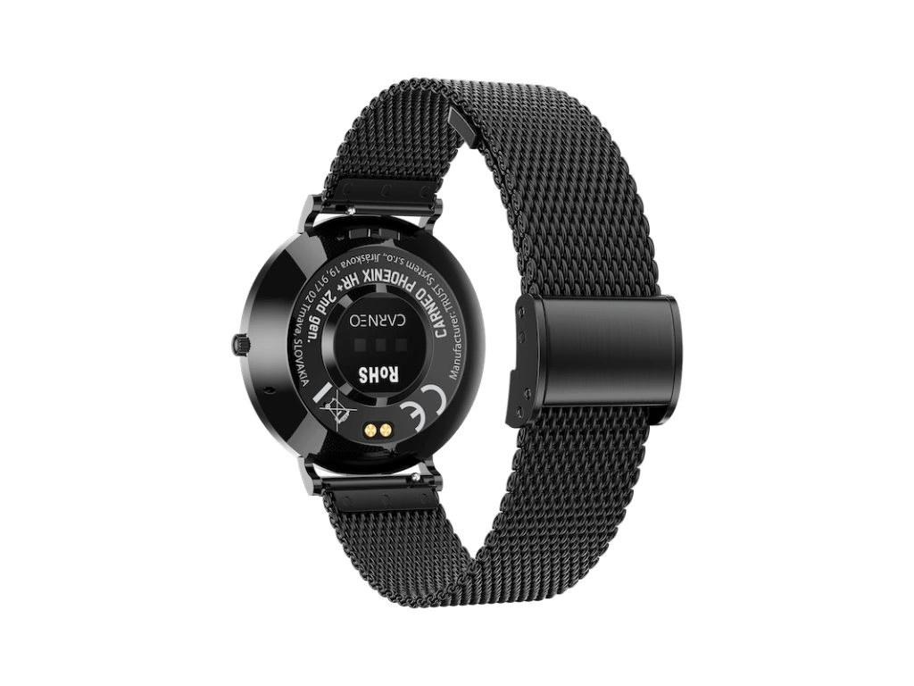 Druhá generace luxusních fitness hodinek CARNEO Phoenix HR+ z nerezové oceli v černé barvě s milánským kovovým řemínkem s barevným dotykovým displejem AMOLED HD. Monitorují vaši denní aktivitu, úroveň stresu a lze je také spárovat s mobilním telefonem, díky čemuž Vás upozorní na příchozí hovor nebo SMS. Hodinky umožňují telefonovat, aniž byste museli telefon vyndat z tašky, díky vestavěnému mikrofonu a reproduktoru až do vzdálenosti 10 m od telefonu. Jejich extrémně tenké tělo z nerezové oceli s jednoduchými křivkami je tak návykové, že je po prvním nošení nebudete chtít sundat z ruky. Výška bočního okraje pouhé 4 mm a hmotnost pouhých 35 g zaručují dokonalou diskrétnost na ruce. Model Phoenix je vzhledem ke své velikosti a hmotnosti určen pro ty, kteří nejsou nadšenci do chytrých hodinek. Operační systém: IOS a Android Displej - úhlopříčka [palce]: 1,32" dotykový Displej - rozlišení [pix]: 466 x 466 Materiál řemínku: Kovový řemínek Materiál hodinek: Nerezová cel Velikost hodinek: 41 mm Šířka řemínku: 20 mm Konektivita: Verze Bluetooth: V5.0 data, V3.0 hlas Voděodolnost: IP 68 Měřené veličiny: *Krokoměr: ano *Měření vzdálenosti: ano *Měření krevního tlaku: ano *Měření okysličení krve: ano *Měření spálených kalorií: ano *Kardio index: ano *Úroveň stresu: ano *Výpočet BMI: ano *Monitor Spánku: ano *Energie těla: ano *Aplikace: Carneo FIT v českém jazyce *Přehrávání hudby: Ovládání hudebního přehrávače v mobilním telefonu Baterie: *Kapacita [mAh]: 200 mAh *Životnost baterie: 3-5 dní Hmotnost [g]: 39 g Obsah balení: *1 x Chytré hodinky CARNEO Phoenix HR+ 2. gen. *1 x USB nabíjecí kabel *1 x Uživatelská příručka