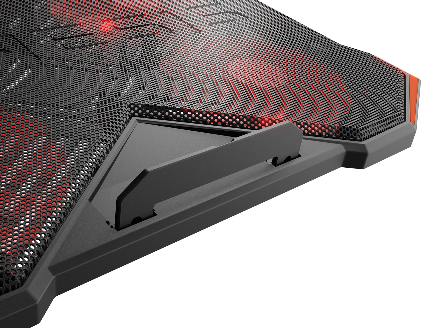 Oxid 260 poskytuje nejen účinné chlazení notebooku, ale může se pochlubit i stylovým vzhledem. Jeho herní charakter podtrhují agresivně zkosené linie a červeně podsvícené ventilátory. Tato chladicí podložka dokonale doplní moderní estetiku vaší sestavy.