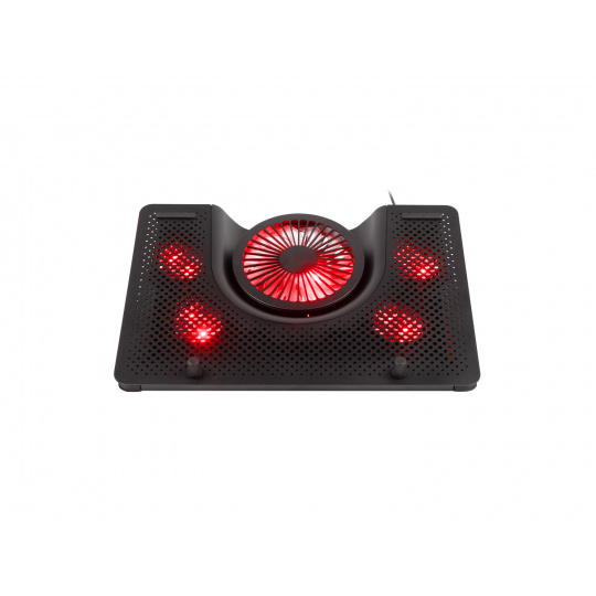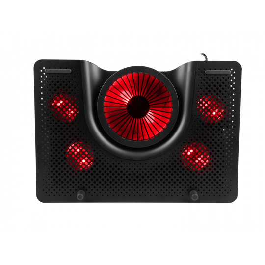 Chladicí systém podložky Oxid 550 je unikátní tím, že jeden velký ventilátor vhání studený vzduch do střední části notebooku a čtyři menší ventilátory umístěny na krajích odsávají teplý vzduch ven, což zajišťuje vynikající cirkulaci a vysokou efektivnost.