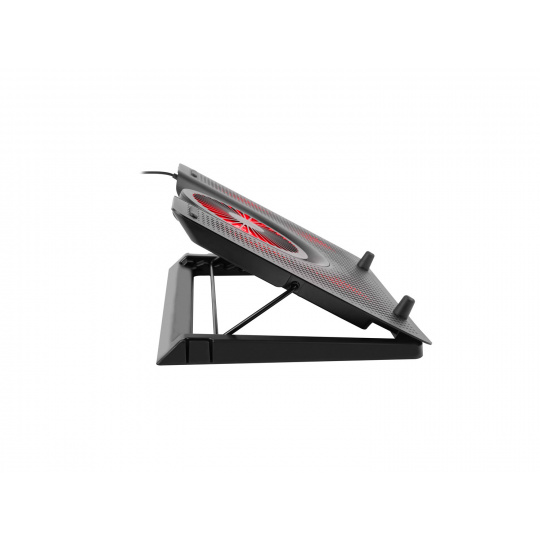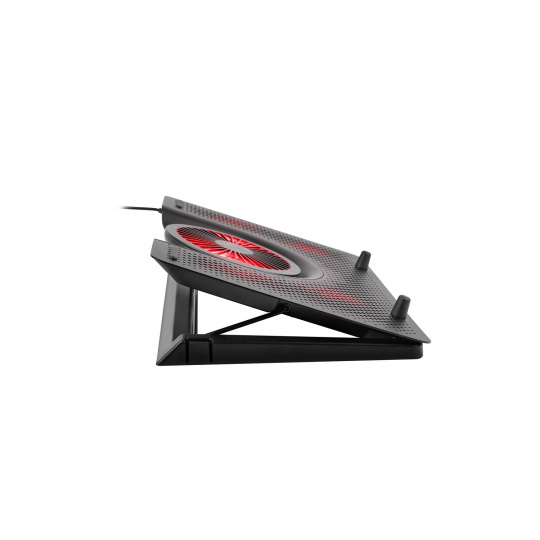Podložka navíc obsahuje možnost nastavení úhlu sklonu v pěti úrovních, díky čemuž si můžete notebook nastavit v té nejpohodlnější poloze a zvýšit tím nejen komfort používání, ale i efektivnost cirkulace vzduchu. Podložka obsahuje gumové nožičky, které zabraňují přesouvání po stole.