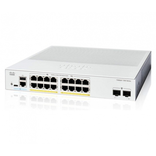Cisco Catalyst switch C1300-16P-2G (16xGbE,2xSFP,16xPoE+,120W,fanless) - REFRESH