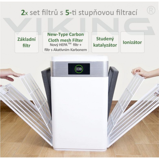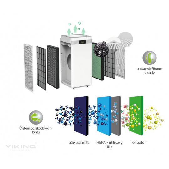• 2x 4 stupňová filtrace včetně ™?HEPA filtrace a filtrační vrstvy studeného katalyzátoru, který účinně rozkládá organické sloučeniny a toxické látky, stejně jako UV lampa.