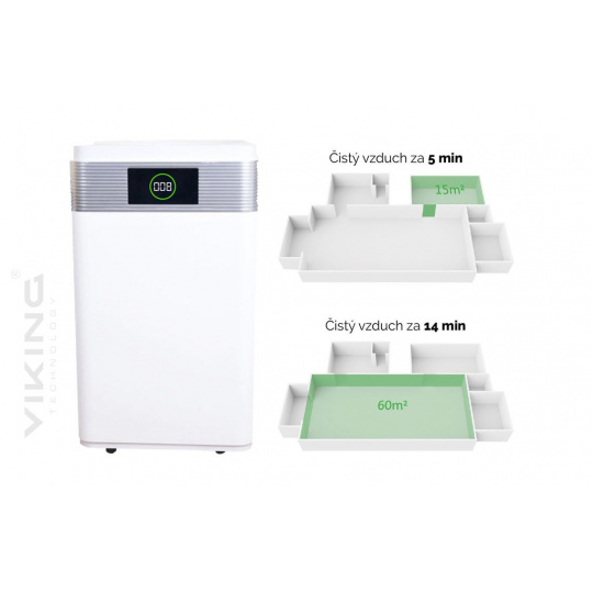 • CADR – vzduchový výkon 600 m3/hod, doporučená velikost místnosti 72m2