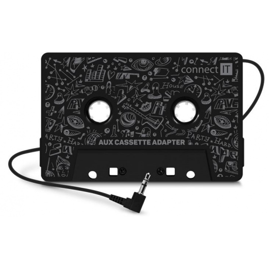 CONNECT IT AUX kazetový adaptér, 3,5 mm jack, ČERNÁ