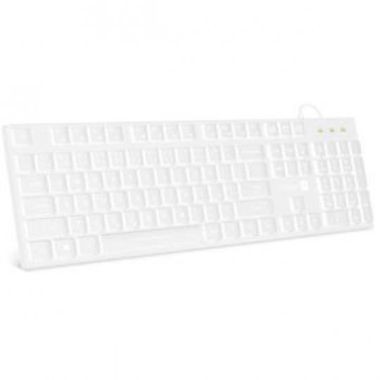 Klávesnice kromě klasických funkcí disponuje 12 multimediálními klávesami, které se obzvláště hodí do kancelářského prostředí. Její bílé podsvícení vám umožní pracovat i v pozdních hodinách při nízkém osvětlení. Příjemný ergonomický náklon klávesnice pomáhá proti únavě zápěstí během dlouhých pracovních relacích.