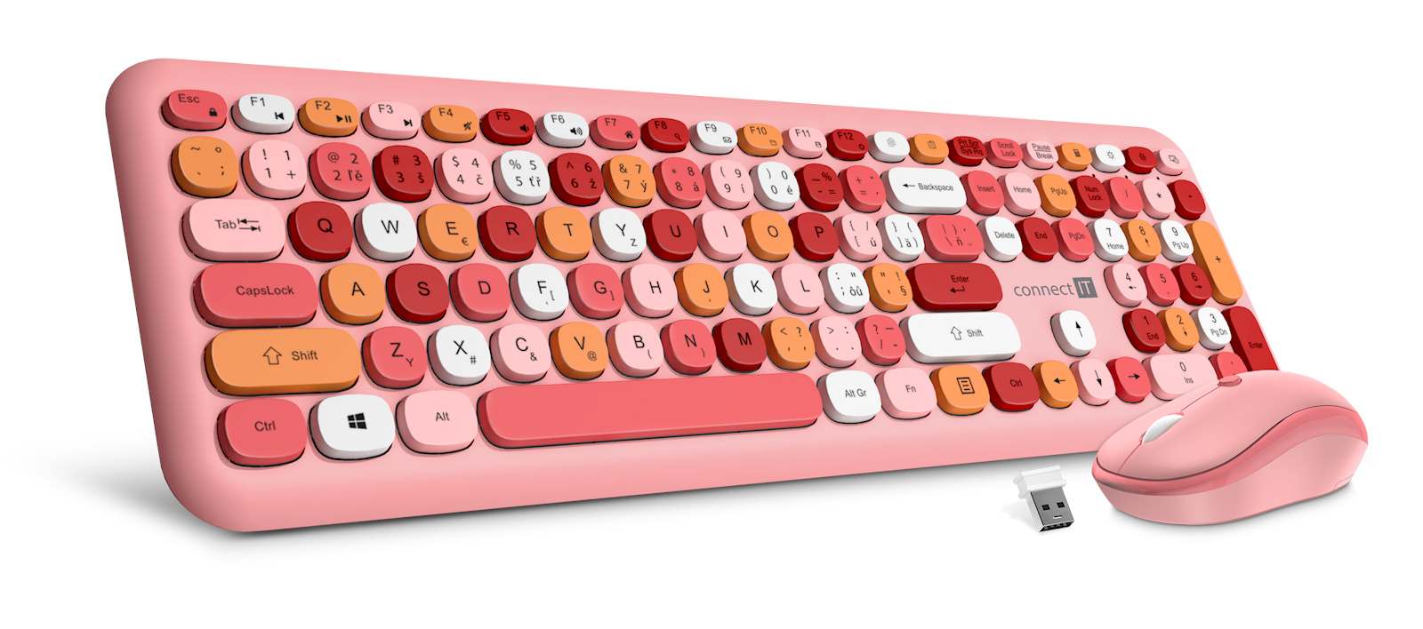 CONNECT IT FASHION combo bezdrátová růžová klávesnice + myš, (+1x AAA +1x AA baterie zdarma),USB, CZ + SK