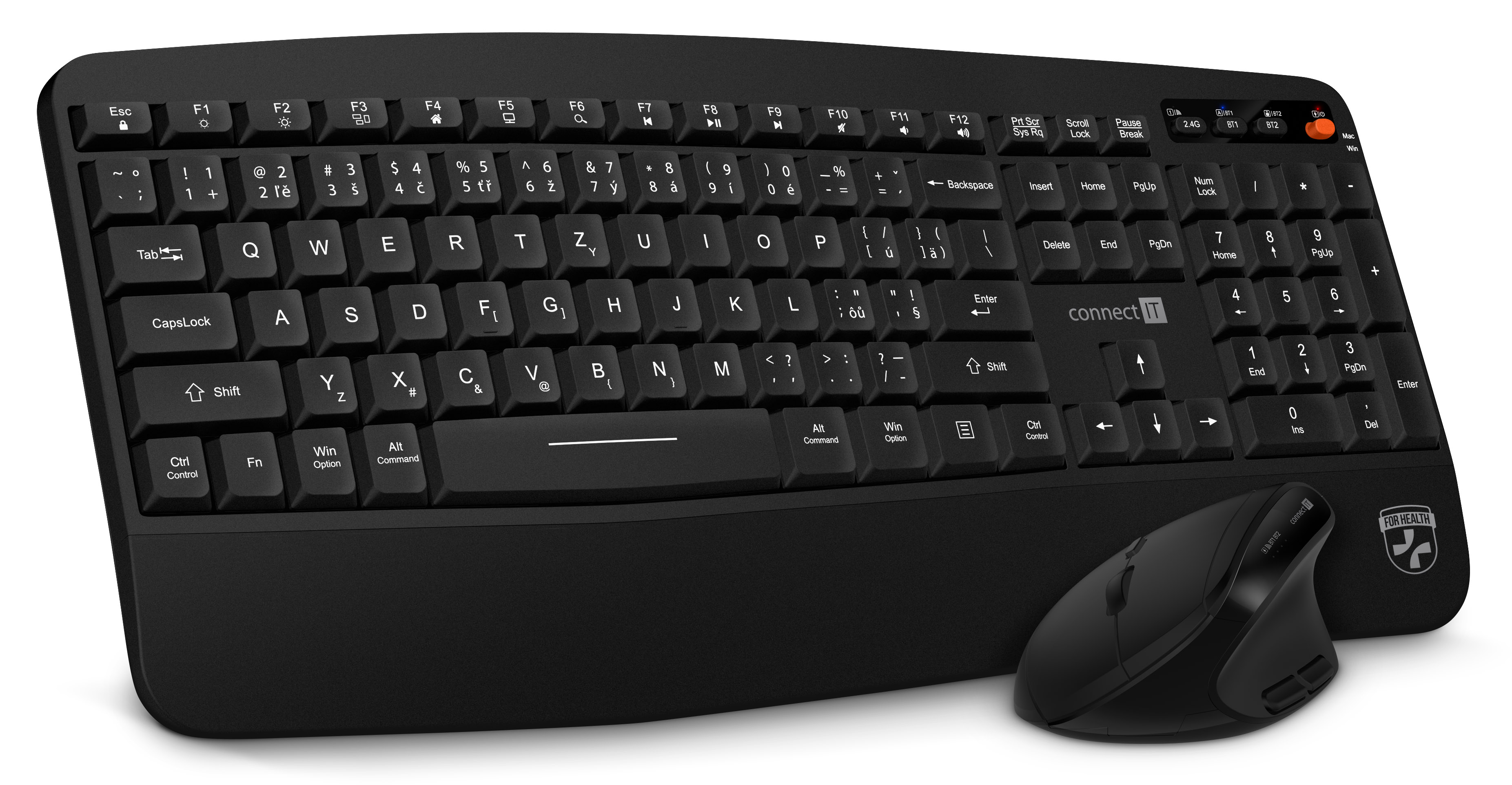 CONNECT IT For Health Wireless Combo bezdrátová černá klávesnice + myš TriMode (2x BT 5.1 + 2.4 GHz