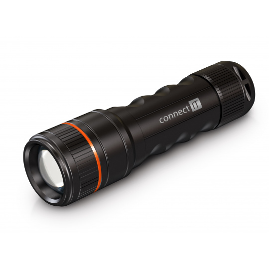 CONNECT IT GLEAM 500 LED ruční svítilna 4x AAA, 500 lm, hliníková, voděodolná, černá