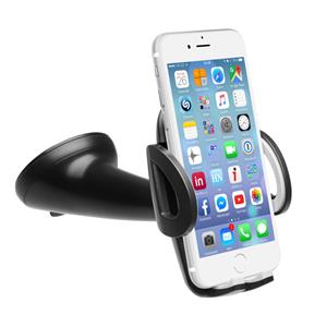 Univerzální držák do auta slouží k uchycení mobilního telefonu na sklo nebo palubní desku vozu. Umožňuje komfortní a bezproblémové používání mobilního telefonu během jízdy. Bezpečné a stabilní dvojramenné uchycení s podpěrnými patkami udrží telefon v držáku i při výrazných nerovnostech vozovky a vysokých rychlostech až do 350 km/h.