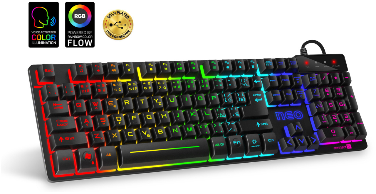 CONNECT IT NEO klávesnice pro hráče (CZ+SK verze), RGB podsvícení, reaguje na zvuk