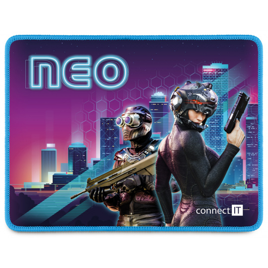 Profesionální podložka herní řady NEO určená i pro amatérské využití. Podložka má měkký, příjemný povrch s nadčasovým cyber potiskem. Při velikosti herní plochy 320 × 245 mm vám nikdy nedojde prostor k pohybu. Velkou výhodou je pogumovaná protiskluzová spodní strana a antistatický povrch, po kterém bez problému bude jezdit každá myš. Materiál byl navržen tak, aby odpuzoval vodu a nečistoty. Podložka má obšité okraje speciální kvalitní svítící nití, která ve tmě jemně svítí.