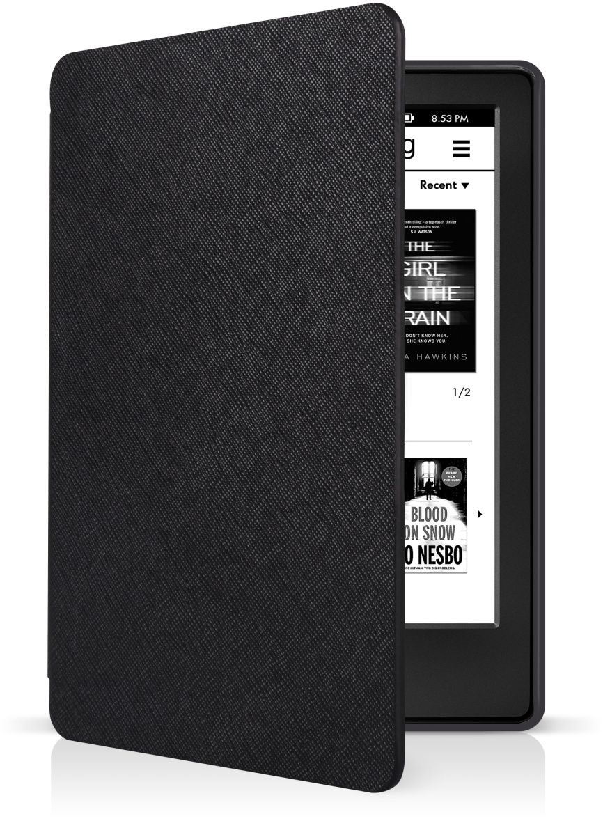 Přední kryt otočný o 360° umožňuje pohodlné čtení v jedné ruce (stačí otevřít a překlopit)