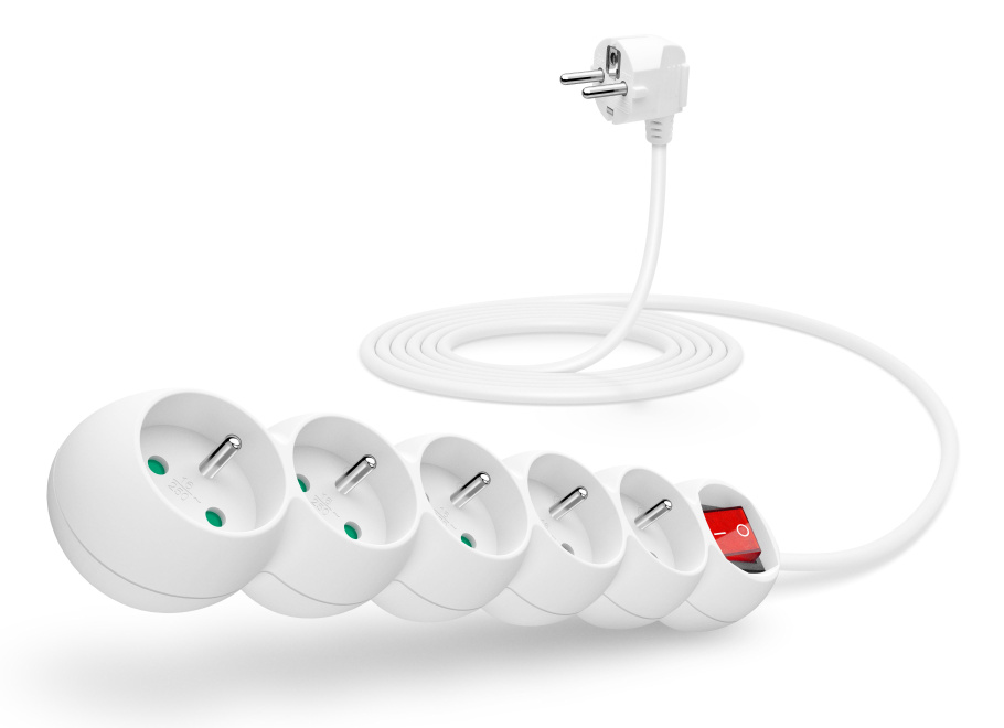 Prodlužovací kabelový přívod na 230V je vybaven hlavním síťovým vypínačem, který při vypnutí zcela odpojí od přívodu elektrické energie všechny zapojené spotřebiče najednou.