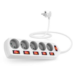 Prodlužovací přívod na 230 V s vypínačem na všechny zásuvky, s centrálním vypínačem a dětskou ochranou.