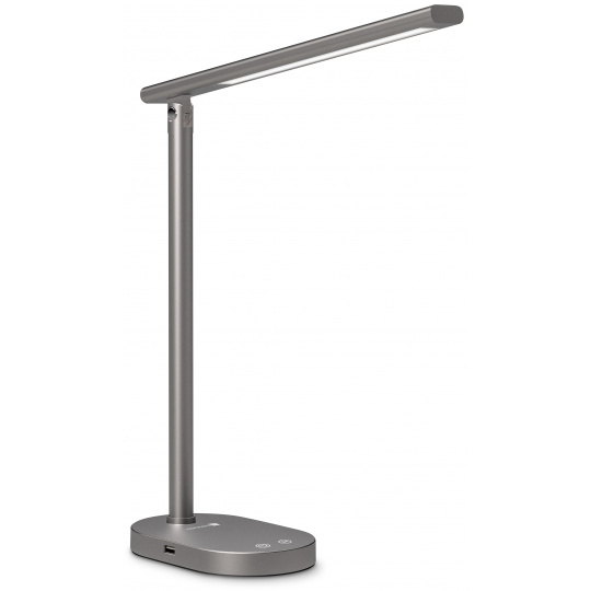 Díky sklopnému rameni nastavíte dokonalý úhel pro jakoukoliv práci. Lampička disponuje USB-A výstupem s výkonem 5 W a dvěma praktickými dotykovými spínači, které umožňují zapnout/vypnout lampu, nastavit 3 úrovně jasu světla nebo nastavit barevnou teplotu světla ve 3 různých úrovních (3000/4000/6500 K).
