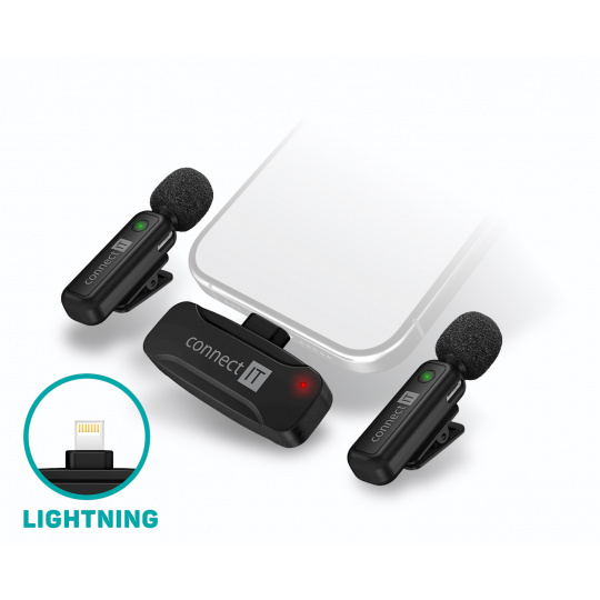 CONNECT IT Wireless Lavalier mikrofon Lightning konektor (2 ks + receiver) set ČERNÝ