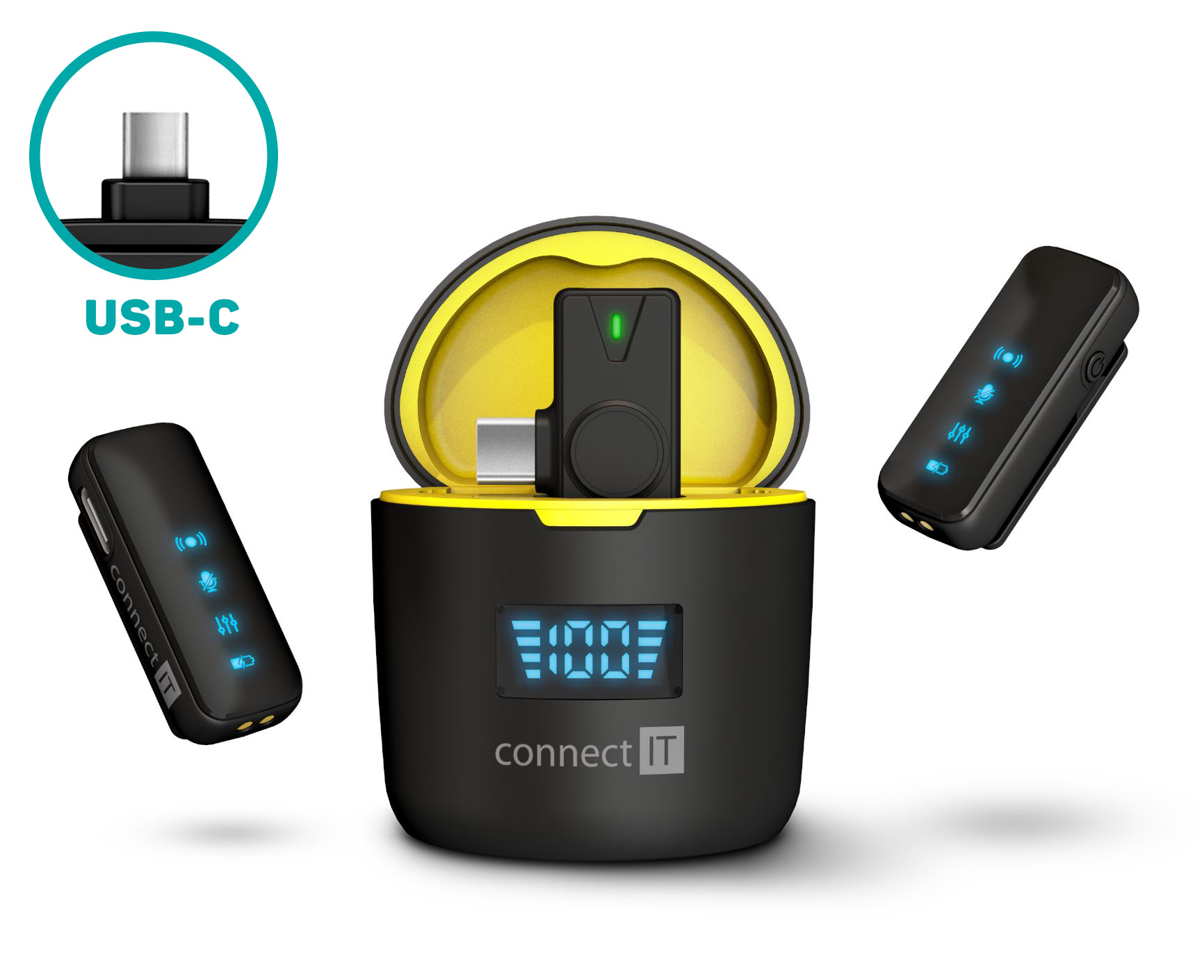CONNECT IT Wireless mikrofon ClipMic Pro USB-C (2 ks + receiver) set ČERNÝ