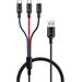 Univerzální nabíjecí kabel 3v1 na nabíjení zařízení s konektory Micro USB, Lightning a USB-C (Type C) umožňuje nabíjení až tří zařízení současně s podporou rychlého nabíjení pomocí max. proudového toku 2 A. Speciální manžetová nadstavba konektorů Micro USB, Lightning i USB-C (Type C) zaručuje lepší přístupnost k nabíjecím zdířkám mobilních telefonů v pouzdrech.